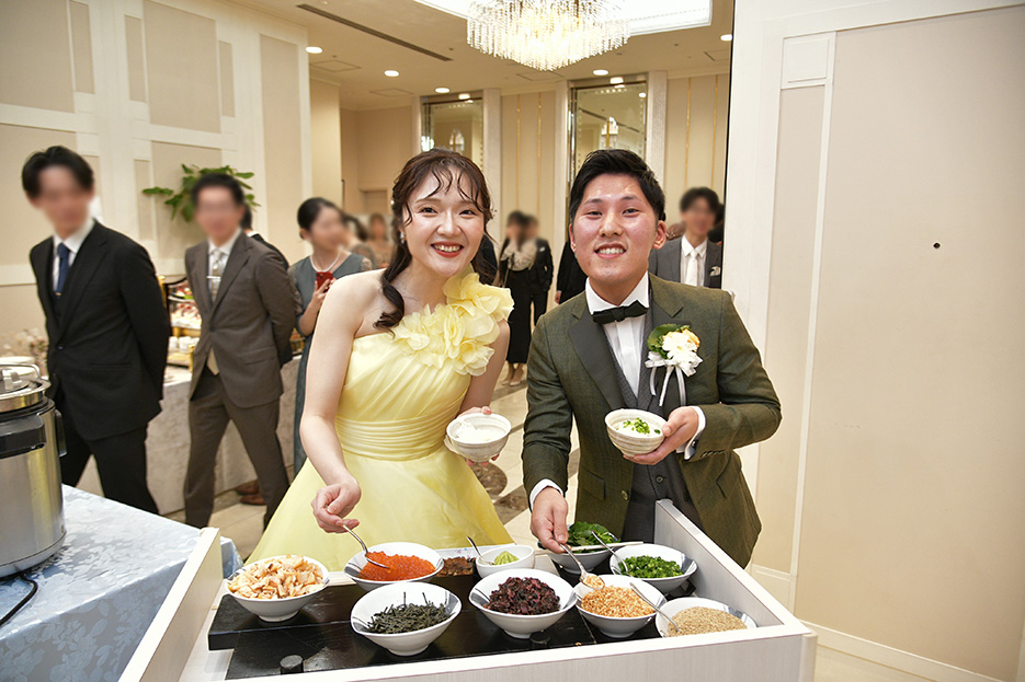 また、デザートビュッフェとお茶漬けビュッフェをサプライズ演出として用意していただきました。